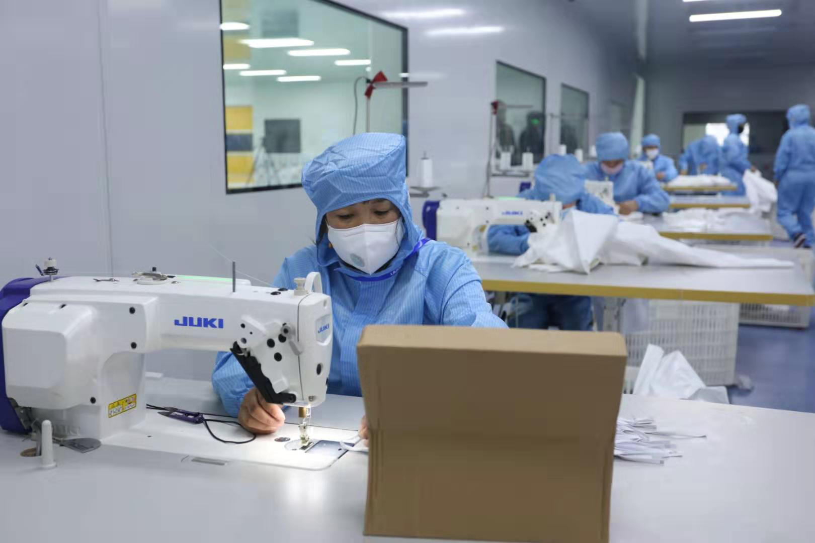 2月15日,贝斯特集团新引进的口罩生产线全力开动,正式出产医用口罩产品。据悉,该批5条生产线满负荷运转后,日产口罩约50万片。此前的2月4日,贝斯特集团联合晋江兴德织造有限公司启动了防护服生产,目前日均产能可达1000件。